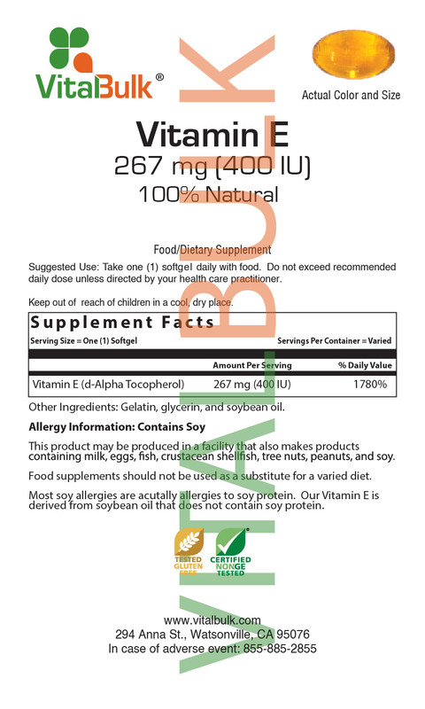 Vitamin E (as d-alpha tocopherol from soy) 400 IU.
